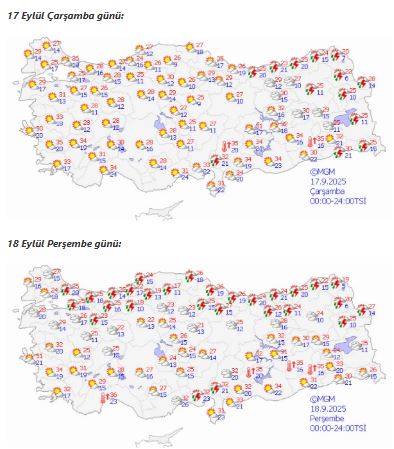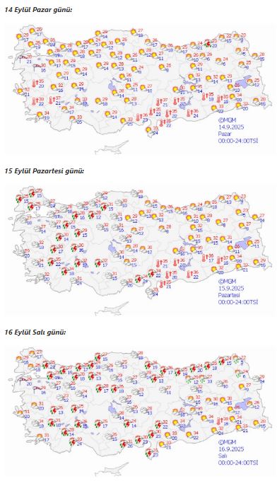 Türkiye yeni haftaya serinleyen hava ve yağışlarla giriyor. Meteoroloji Genel Müdürlüğü (MGM) verilerine göre, 5-19 Eylül tarihleri arasında ülke genelinde sıcaklıkların düşmesi bekleniyor.