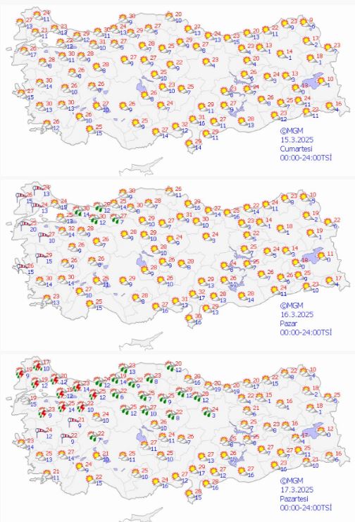 Benzer bir tablo başkent Ankara'da da yaşanacak. Pazar günü 29 dereceye ulaşması beklenen sıcaklıklar, hafta ortasına doğru hızla düşecek. Adana ve Antalya hattında da sıcaklıkların 25-30 derece arasında seyrettiği belirtilirken, bu bölgelerde de hafta ortasından itibaren sıcaklıklarda düşüş görülecek.