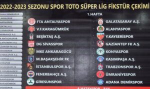 Spor Toto Süper Lig 2022-2023 sezonunun fikstür çekimi gerçekleşti. 5 Ağustos’ta başlayacak olan lig, 28 Mayıs 2023’te sona erecek. Ligin ilk yarısı, 13 Kasım’da sona erecek, ikinci yarı ise 23 Aralık’ta başlayacak.