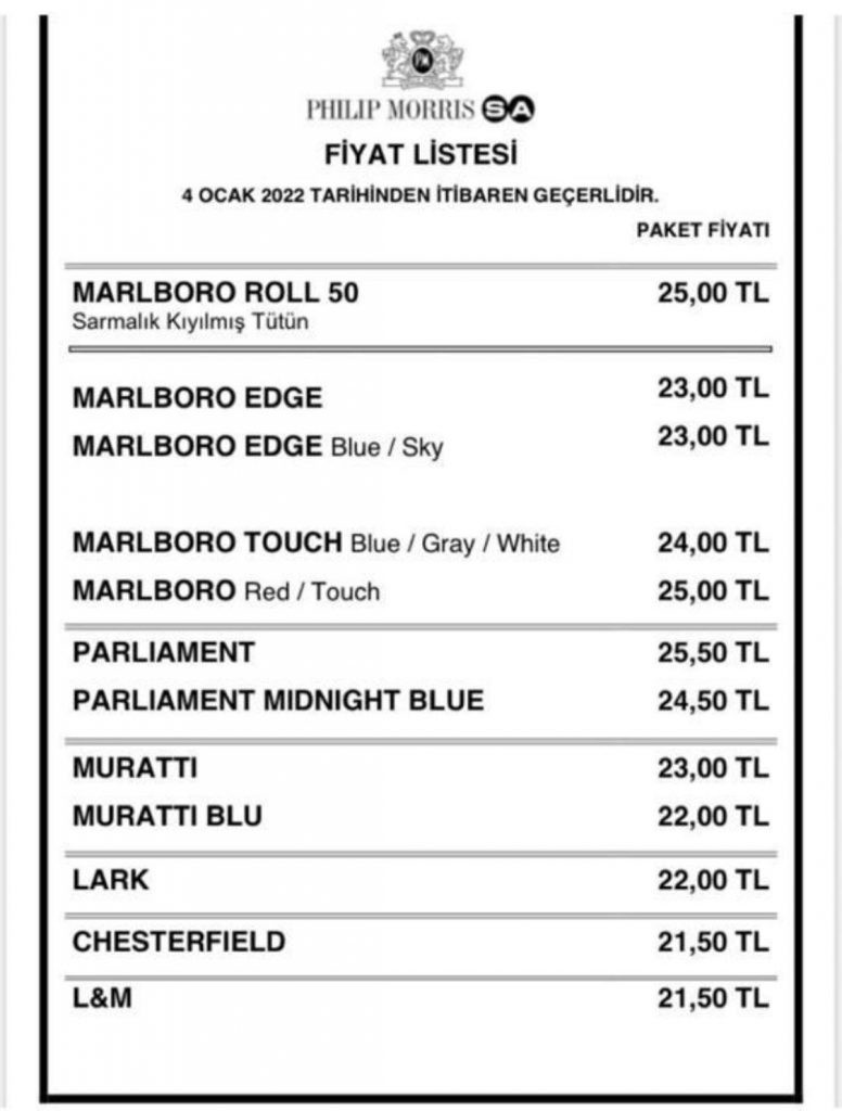 Türkiye Tekel Bayiler Platformu Başkanı Özgür Aybaş, sosyal medya hesabından yaptığı paylaşımla Philip Morris grubu sigaralara 4 TL zam geldiğini duyurdu.