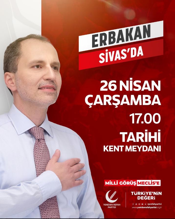 • Yeniden Refah Partisi Genel Başkanı Fatih Erbakan Sivas’a Geliyor!