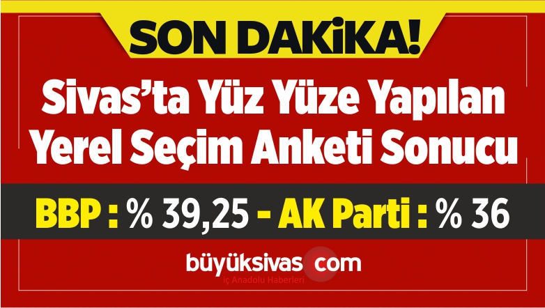 Sivas 2019 Yerel Seçim Anketi Sonuçları! Yüz Yüze Anket