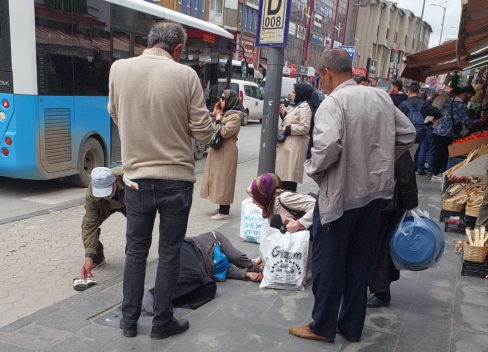 Kadını tanımayan vatandaşlar yerde hareketsiz halde yattığını gördüklerinde 112'yi arayarak ambulans çağırıyor...