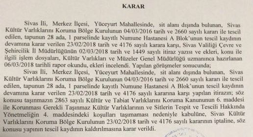 Sonuç olarak Sivas'ta bir süredir adeta film repliği Hızır idi Yunus idi repliğine dönüşen konuya nokta konulmuş oldu. Bina YIKILACAK!