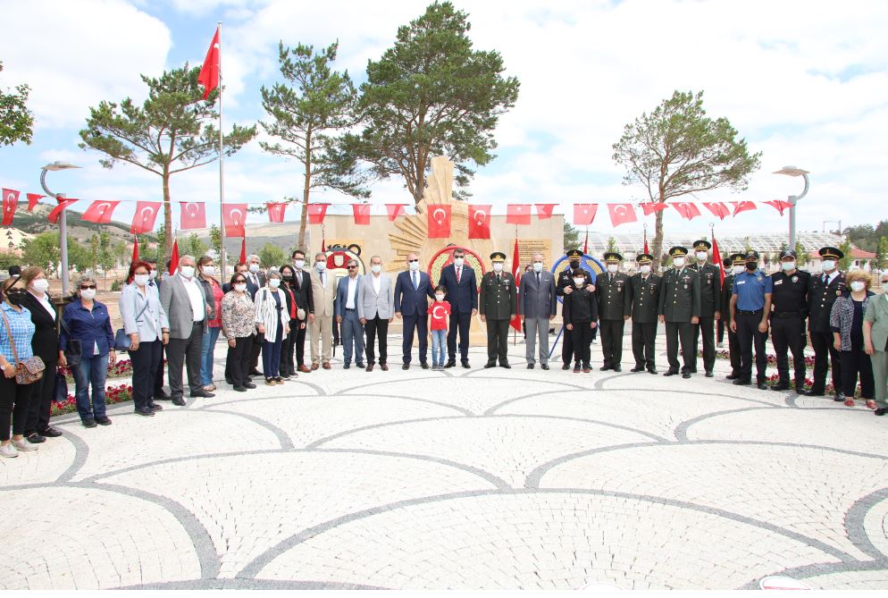 Sivas Valisi Salih Ayhan, Garnizon ve 5. Piyade Eğitim Tugay Komutanı Tuğgeneral Hakan Tutucu ve Belediye Başkan Hilmi Bilgin’in, anıta çelenk sunmasının ardından saygı duruşunda bulunularak İstiklal Marşımız okundu.