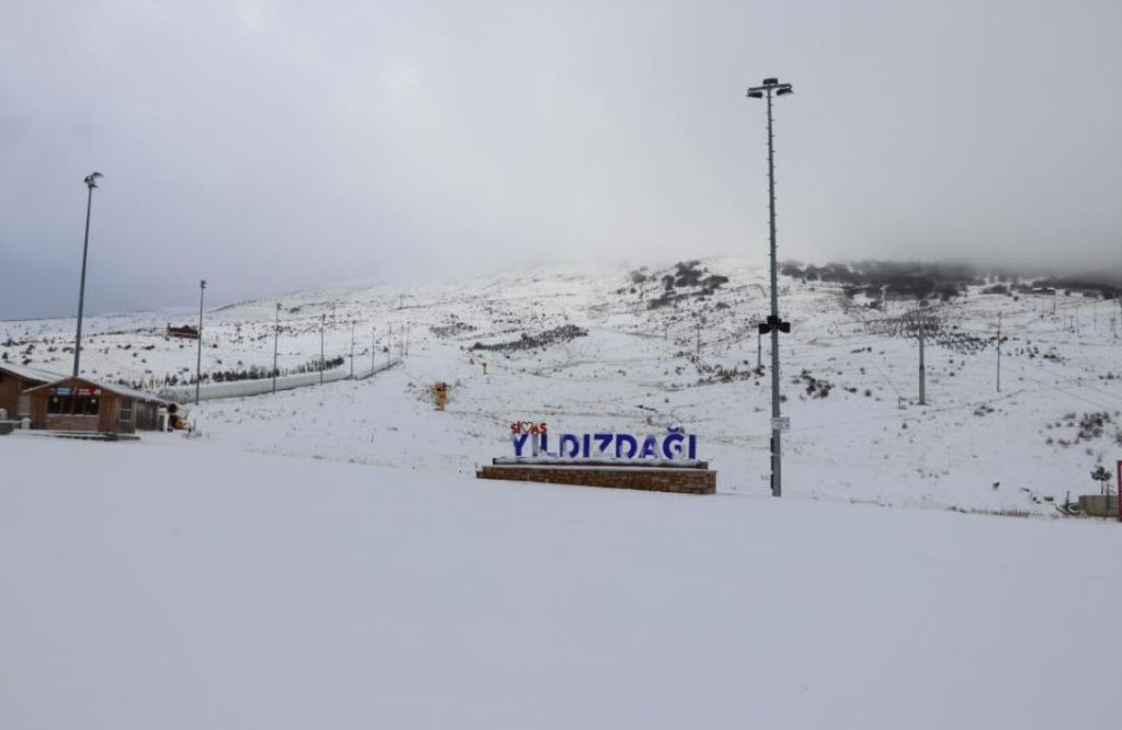 Sivas'ta bulunan Yıldızdağı Kış Turizmi ve Kayak Merkezi'nde sezonun açılmasına günler kala kar kalınlığı 10 santimetreye ulaştı.