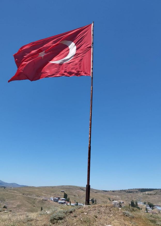 Sivas'ın Yıldızeli ilçesi Güneykaya beldesinde yıpranan Türk Bayrağı yetkililer tarafından kısa sürede değiştirildi...