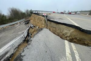 Diğer şeritten trafik verilirken, Edilli mevkiindeki kısım tamamen çöktü. Derin yarıkların oluştuğu bölgede asfalt kağıt gibi yırtıldı. Bölge drone ile görüntülendi. Görüntüler dehşeti adeta gözler önüne serdi.
