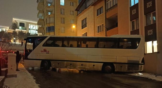 Kar yağışı ve buzlanmanın etkisi ile rampayı çıkmakta güçlük çeken bir otobüs kaymaya başladı.