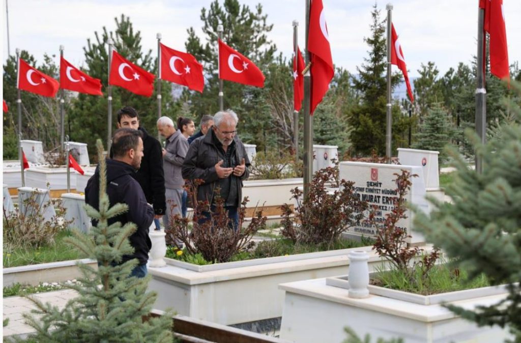 Sivas’ta Ramazan Bayramı öncesinde garnizon, polis şehitlikleri ile yakınlarının mezarlıklarını ziyaret eden vatandaşlar Yukarı Tekke Mezarlığı’nda yoğunluk oluşturdu.