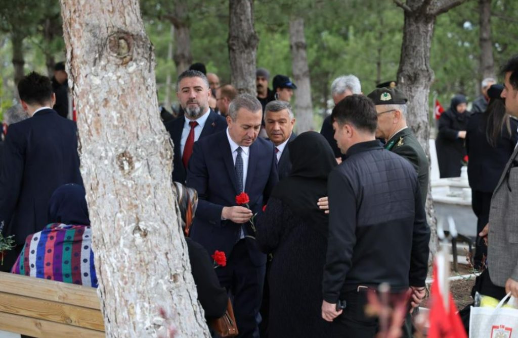 Öte yandan Sivas Valisi Yılmaz Şimşek, Belediye Başkanı Adem Uzun, Sivas Ticaret ve Sanayi Odası Başkanı Zeki Özdemir ve il protokolü, Polis ve Garnizon Şehitliklerini ziyaret etti. İlk olarak Polis Şehitliğini ziyaret eden il protokolü, saygı duruşunda bulunarak İstiklal Marşı okudu. Dua edilmesinin ardından mezarlıklara karanfil bırakıldı. Garnizon Şehitliğini de ziyaret eden il protokolü üyeleri, şehit yakınları ile görüşerek bayramlarını tebrik etti. (İHA)