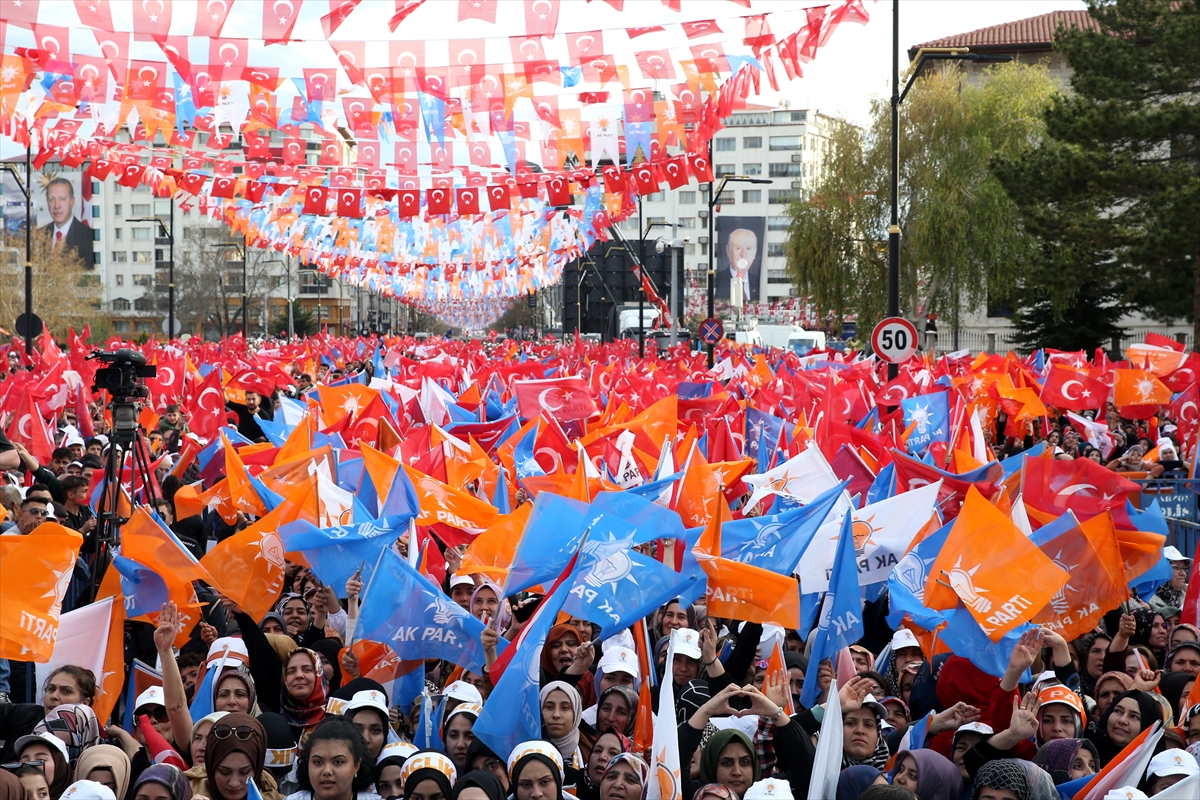 Alandaki AK Parti, BBP, MHP ve Yeniden Refah Partisi bayramlarını taşıyan Sivaslılar ise dikkatlerden kaçmadı.