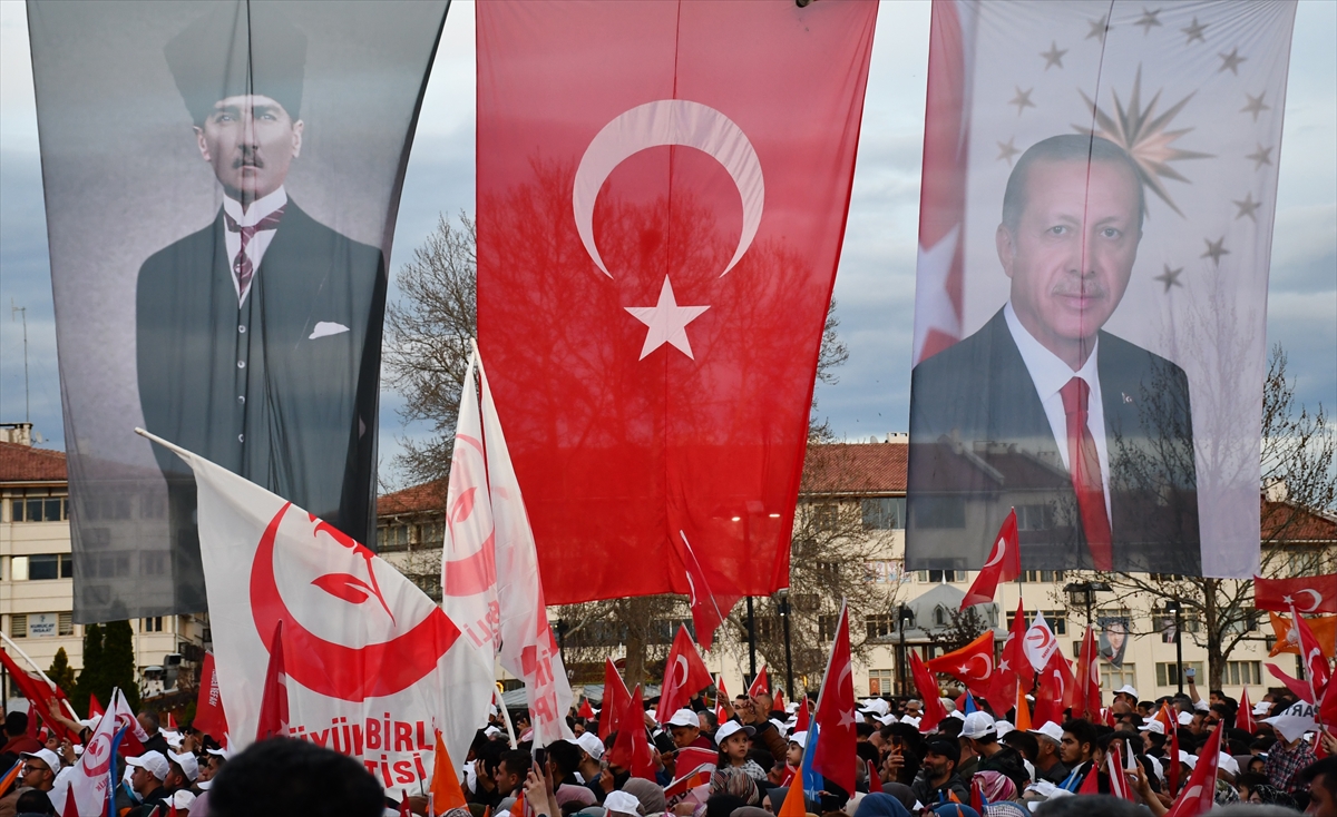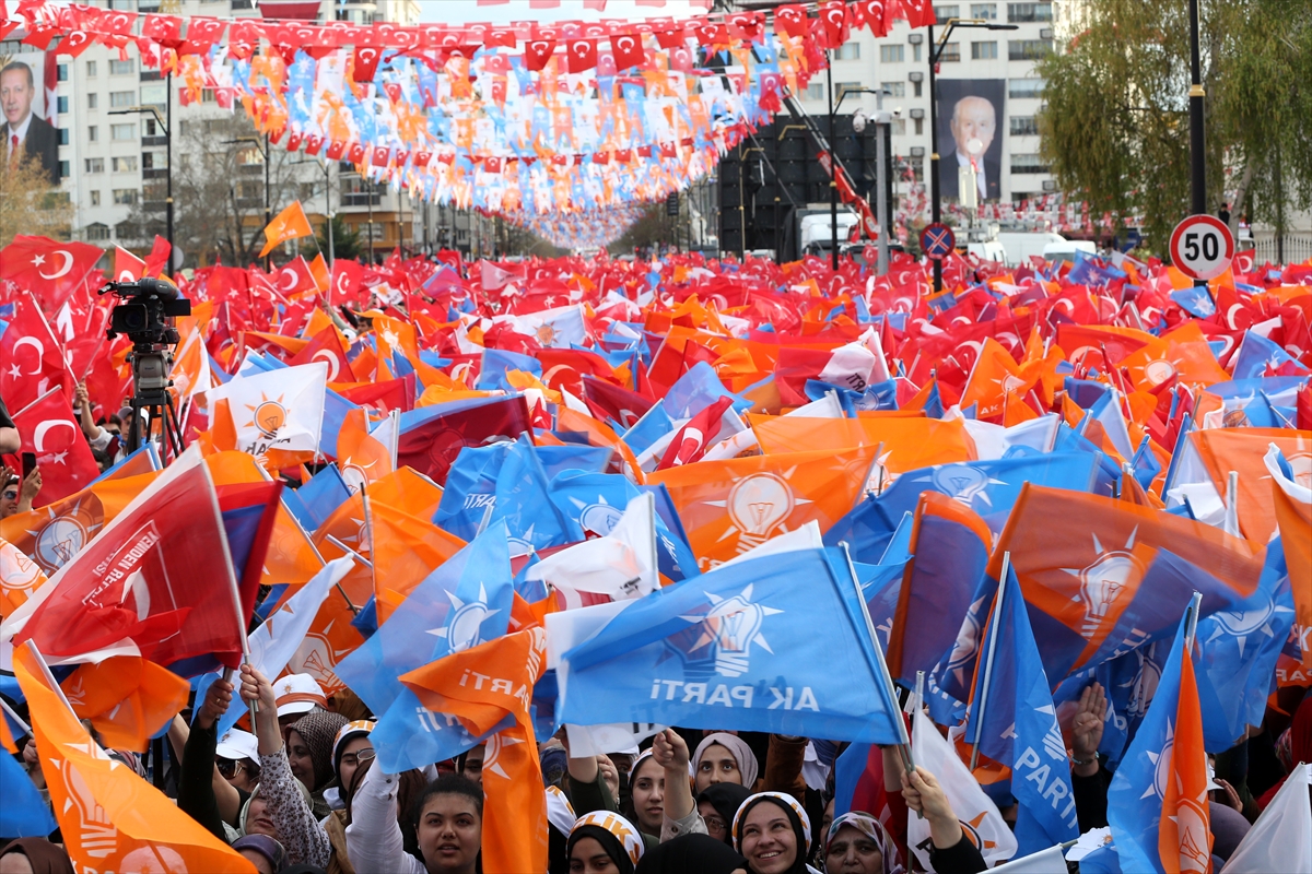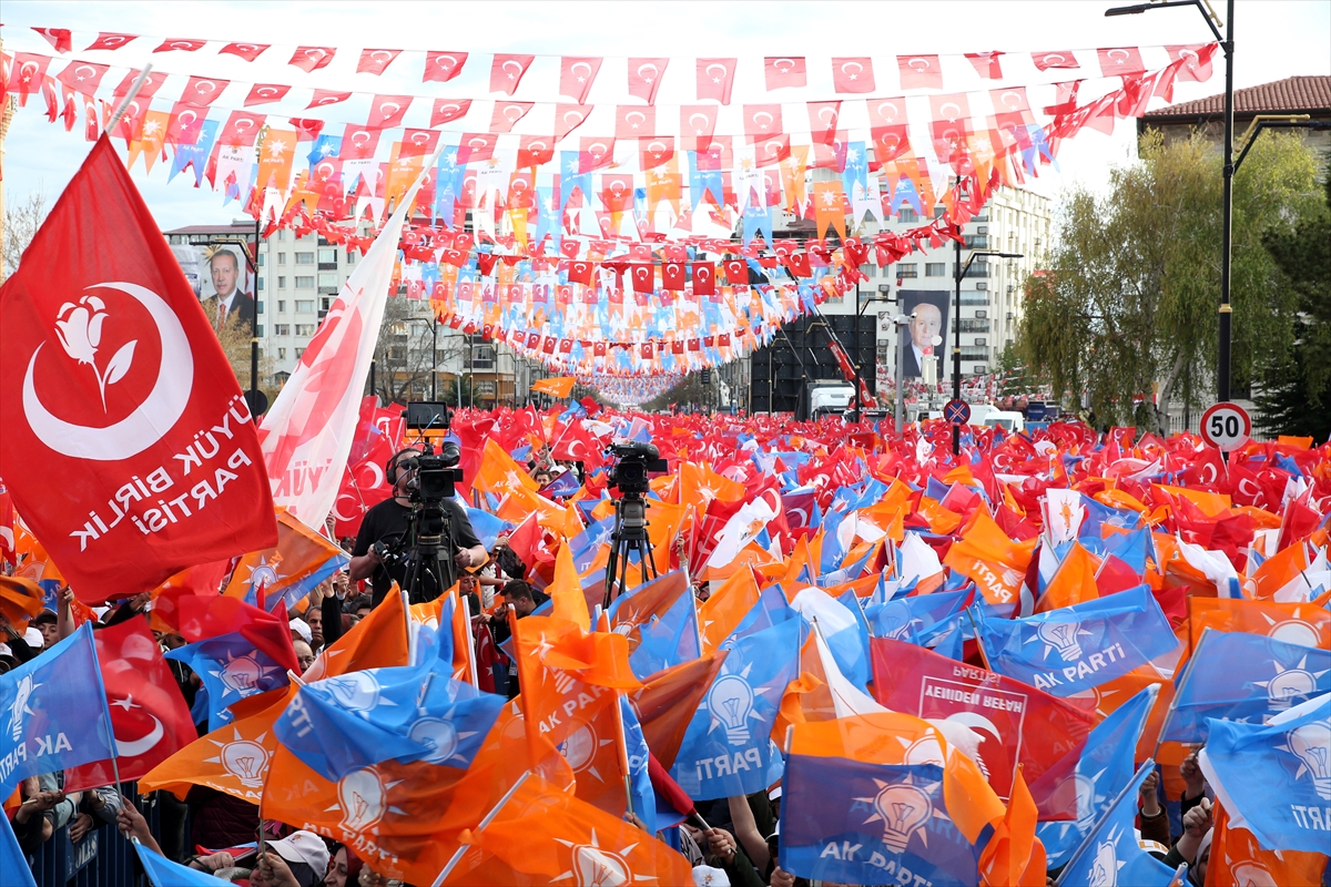 Alandaki AK Parti, BBP, MHP ve Yeniden Refah Partisi bayramlarını taşıyan Sivaslılar ise dikkatlerden kaçmadı.