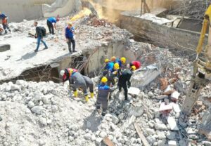 4 Eylül Mahallesinde bulunan bir bina enkazında yürekler ağızlarda