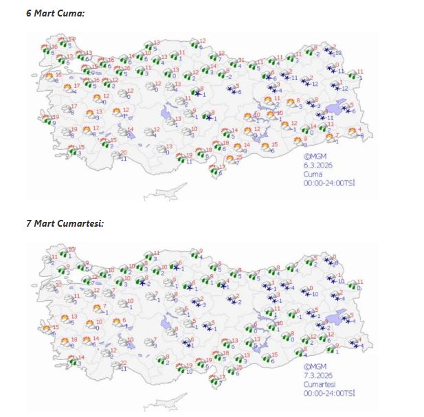 Cuma ve hafta sonu itibarıyla batı kesimlerde sıcaklıkların artmaya devam etmesi bekleniyor. Marmara ve Ege bölgelerinde sıcaklıkların 12 ile 18 derece arasında olacağı tahmin edilirken, güney kıyılarında 15 ile 19 derece civarında değerler görülebileceği belirtiliyor.