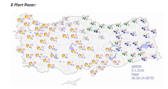 Meteoroloji verilerine göre iç ve doğu kesimlerde hava sıcaklıkları mevsim normallerinin 3 ila 6 derece altında seyrediyor. Batı bölgelerde ise sıcaklıkların yavaş yavaş yükselmesi öngörülüyor.