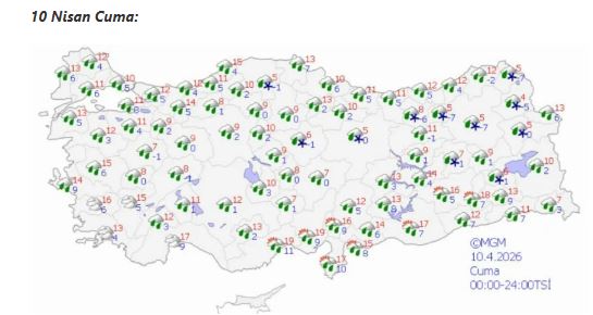 Cuma günü ise bazı bölgelerde güneşli hava görülse de genel olarak serin ve yer yer yağışlı bir hava hakim olacak. Sıcaklıkların mevsim normallerinin altında kalacağı öngörülüyor.