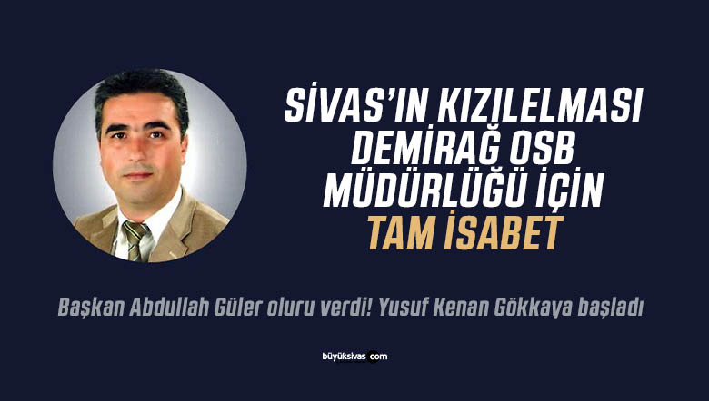 Sivas Demirağ OSB Müdürlüğü görevine TBMM AK Parti Grup Başkanı Abdullah Güler'in olurları sonrasında tecrübeli isim Yusuf Kenan Gökkaya getirildi. Önceki müdür Emre Torun’un iş değişikliği nedeniyle ayrılmasının ardından boşalan göreve atanan Gökkaya’nın, uzun yıllara dayanan kamu tecrübesi ve sektörel birikimiyle bölgeye önemli katkılar sunması bekleniyor.