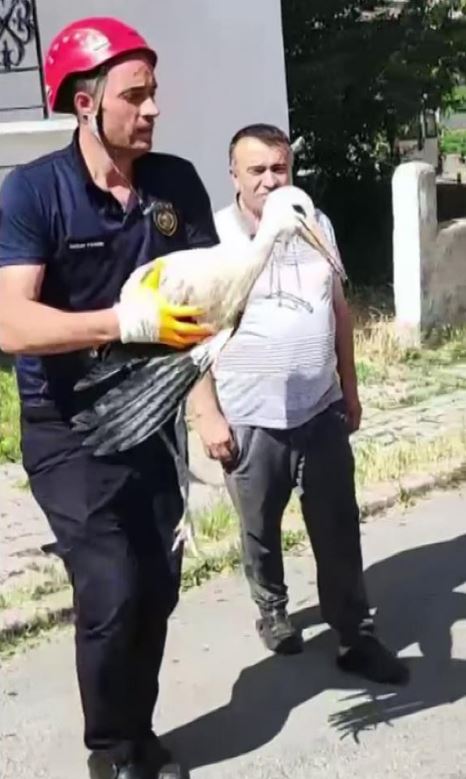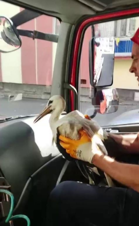 Sivas'ta yuvasından yere düşüp yaklaşık bir kilometre uzaklaşan yavru leyleği itfaiye ekipleri alarak tekrardan yuvasına koydu.