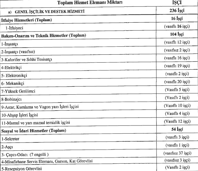 Alınacak olan personeller arasında inşaatçı, elektrikçi, ahşapçı, sekreter, aşçı, çaycı, resepsiyon görevlisi, şoför, mühendis vb. yer alıyor.