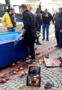 Zabıta meyve sıkma makinesine el koyunca ürünlerini yerlere saçtı