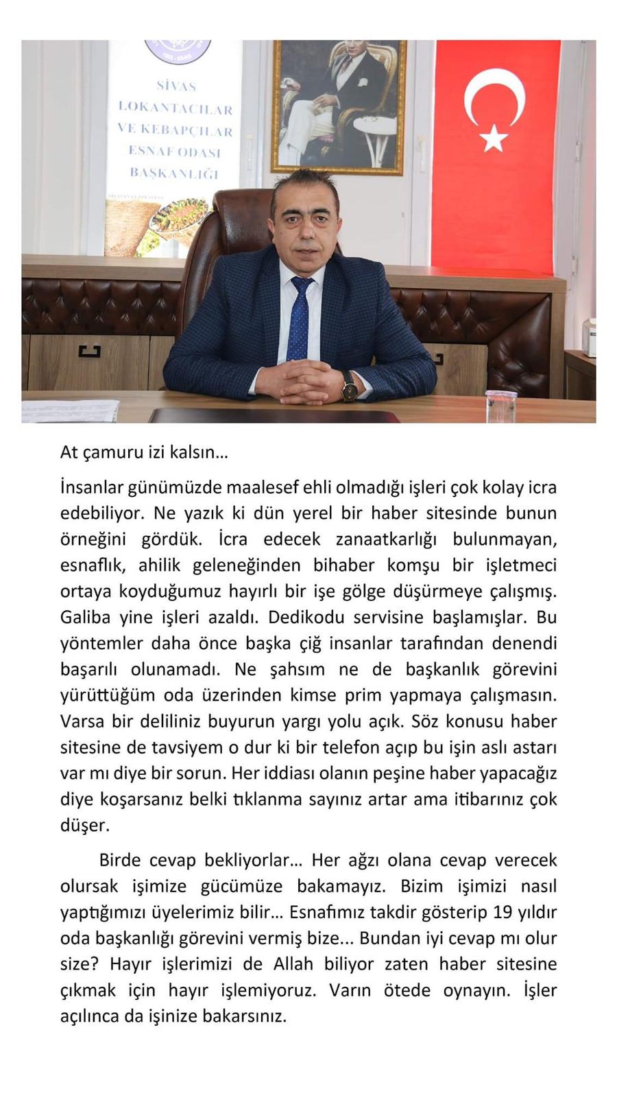 Mevcut lokantacılar odası Başkanı Nazmi Yiğit konuyla alakalı sosyal medya hesabından paylaşım yaparak "İcra edecek zanaatkarlığı bulunmayan, esnaflık, ahilik geleneğinden bihaber komşu bir işletmeci..." diyerek zehir zemberek ifadelerde bulundu.