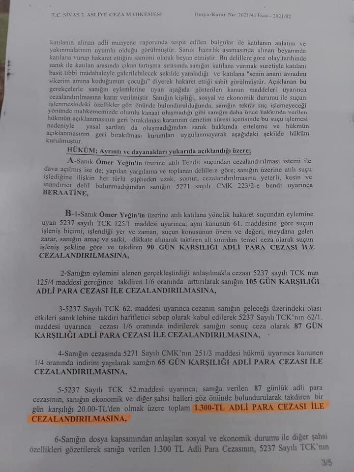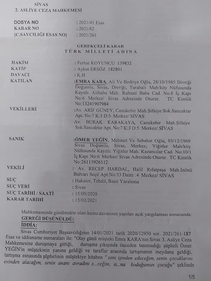 Büyük Birlik Partisi Sivas İl Genel Meclis Üyesi Ömer Yeğin'den Sivas Belediyesi eski Başkanı ve BBP MYK üyesi Doğan Ürgüp'e zehir zemberek sözler... Yeğin mesajının ekinde aldığı cezanın mahkeme evraklarını da paylaşırken ilgili olayın ise 15 Eylül 2020'de yaşandığı görüldü.