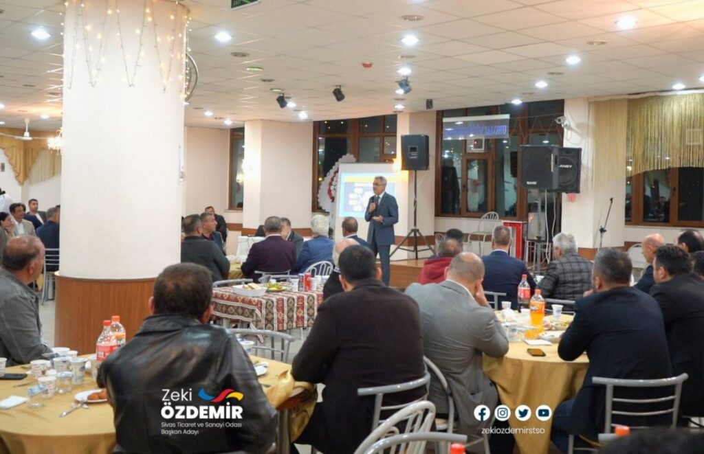 Yapılan ziyaretlerin ardından akşam yemeği için Su vadi otelde toplantı düzenlendi. Zeki Özdemir, Suşehri, Akıncılar ve Gölova ilçelerinden katılan sanayici ve tüccarlara projeleri hakkında bir sunum gerçekleştirdi. Başkan Adayı Özdemir konuşmasında, Merkez ve ilçeler arasındaki ticaretin gelişmesi için faaliyetlerin yürütüleceğini belirterek her ilçeden Yüksek istişare kurulunda temsilcilerin yer alacağını belirtti.