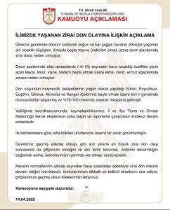 Valilikten Flaş Zirai Don Açıklaması!