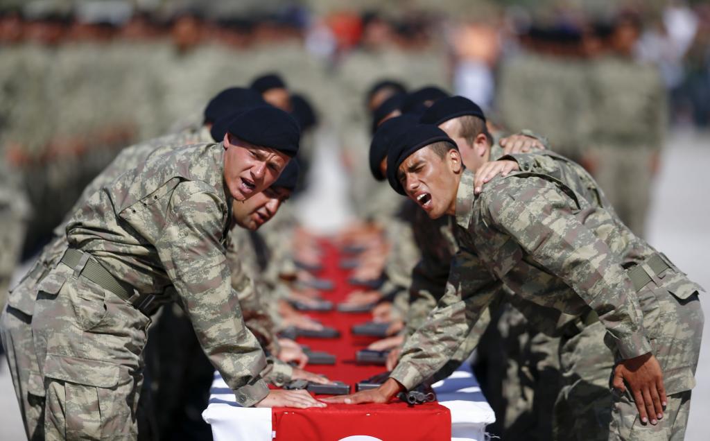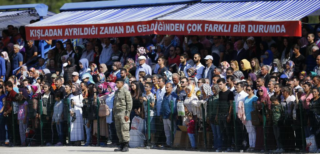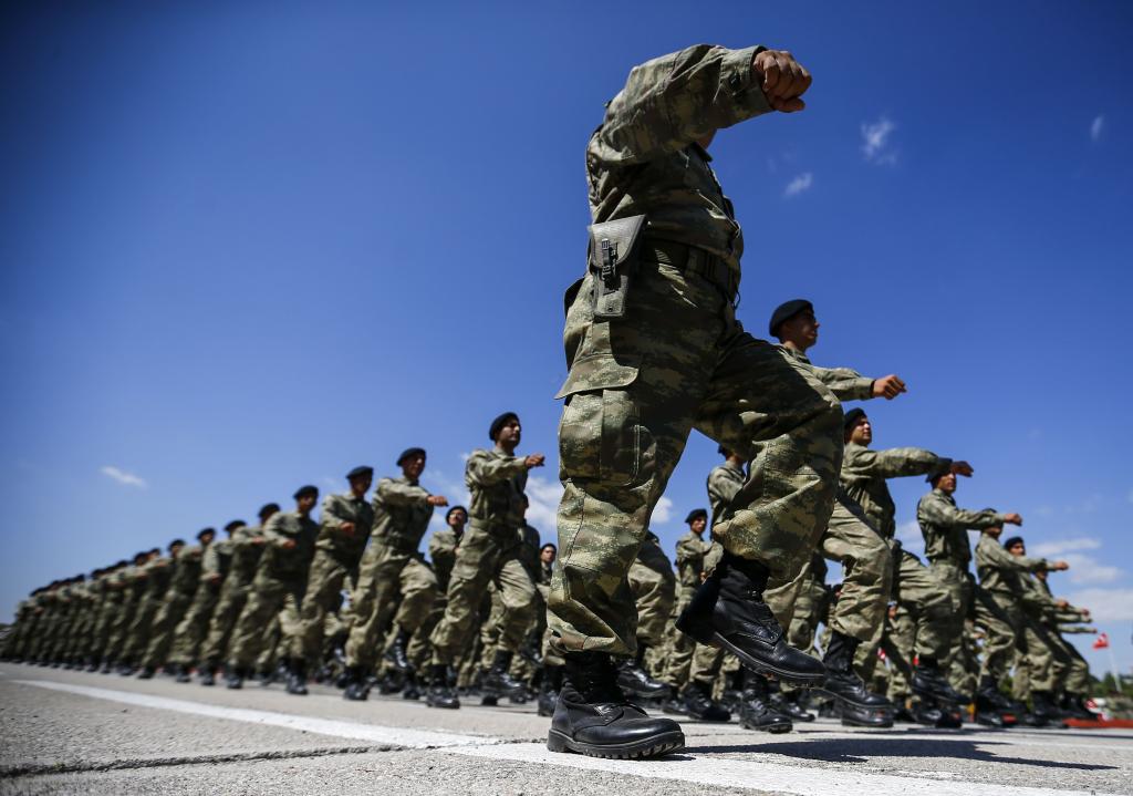 Etimesgut'taki Zırhlı Birlikler Okulu ve Eğitim Tümen Komutanlığında düzenlenen yemin törenine eğitimlerini tamamlayan askerlerin yakınları da katıldı.(AA)